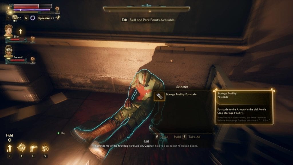 Once inside, a little exploration will show that the armory door is locked. Unfortunately, that’s where you need to go. You can either hack it open (40 skill required) or check the sticky note by the door for the places you can find the code.