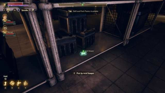 Make your way back downstairs, unlock the armory, and pick up the Acid Steeper just inside the door. Head back to the Unreliable, stroll up to SAM’s bay by the crew quarters, and install it. Voila! A new, acid-spewing crew member for The Outer Worlds.