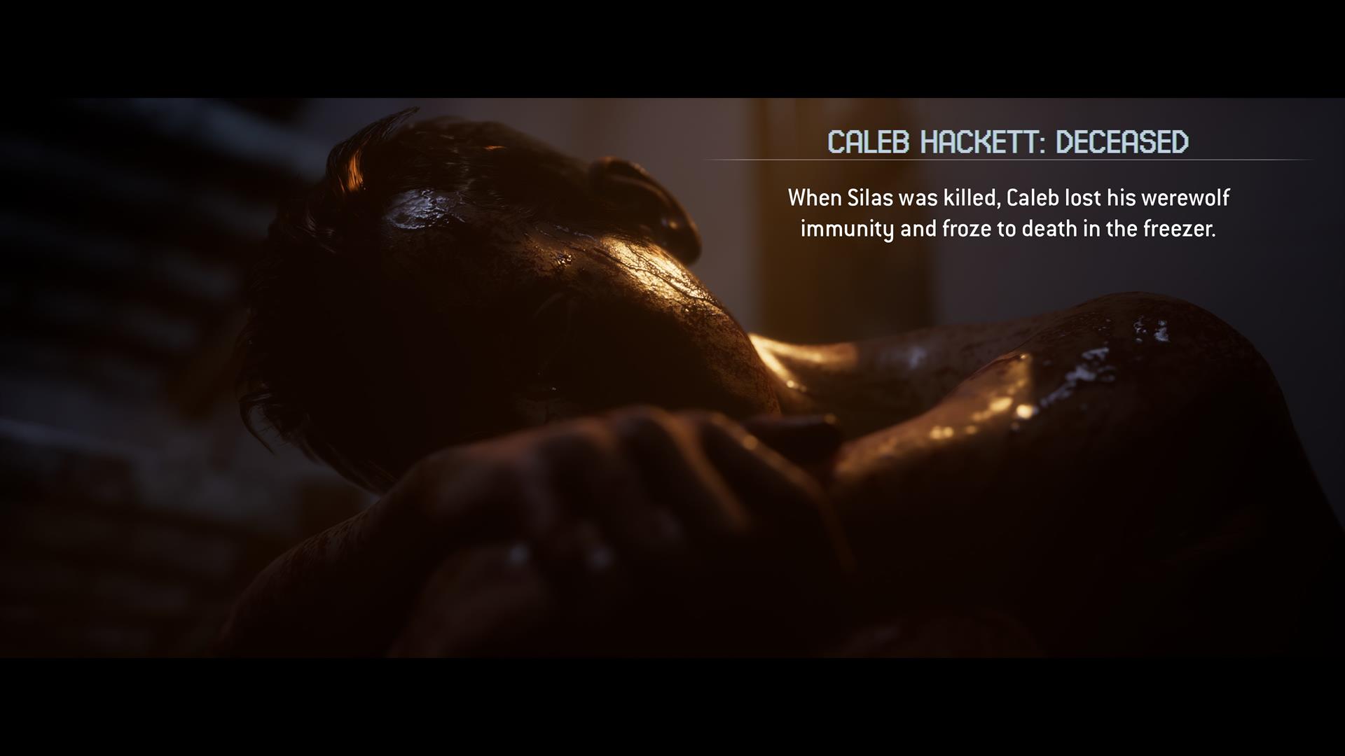 - Note: As of now, I’m not sure if it’s possible for Caleb to survive if you trapped him and if you never killed Silas (which means Caleb won’t revert back into human form). Then again, since the full moon is over, he’ll probably die anyway.