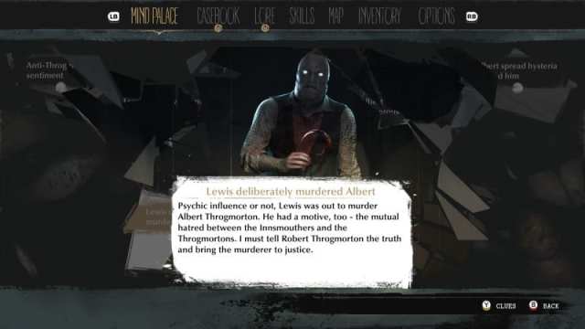 Whenever you’ve obtained enough clues and evidence for each case, it’s time to check Reed’s Mind Palace. The game will also notify you when you need to check it since the words “Mind Palace” show up in gold at the right-hand side of your screen.