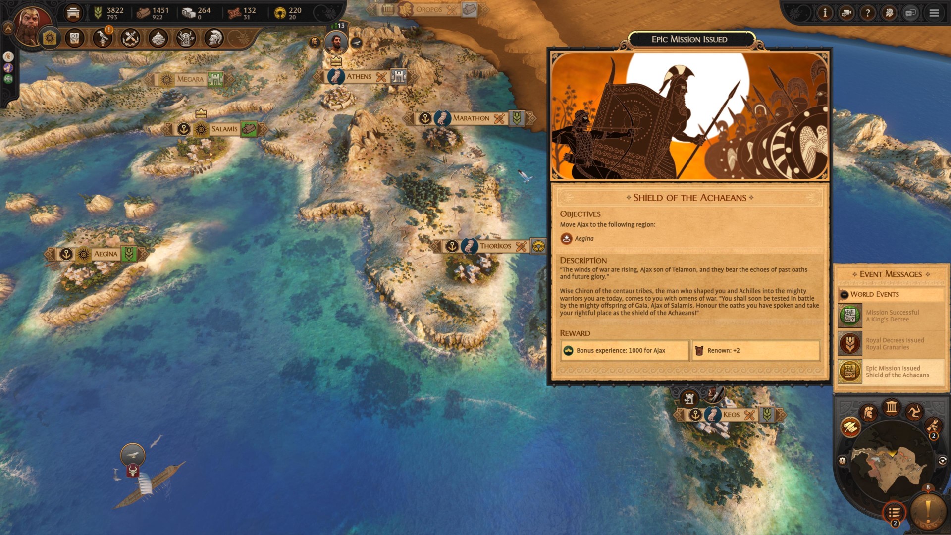 On turn 8, you’ll get the epic mission to have Ajax move to Aegina. Well, you’re likely there anyway, so you’ll get this tally done.