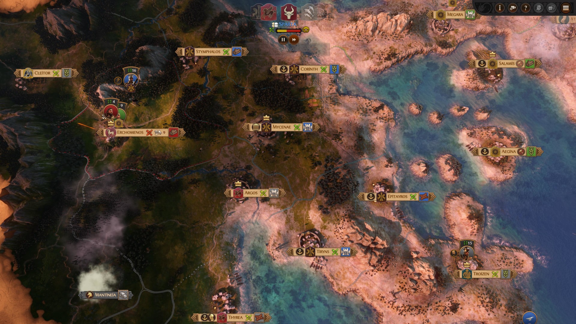 Save-scumming might be imperative here. You can let Agamemnon capture Corinthian settlements, but the last one (usually Erchomenos) has to be yours to prevent any mishaps. Even besieging it and capturing it once Agamemnon’s forces can reinforce you is fine, as long as you avoid the Mycenaean lord from conquering that final settlement. Oh, and watch out in case the Corinthians end up capturing Argos’ lands too.