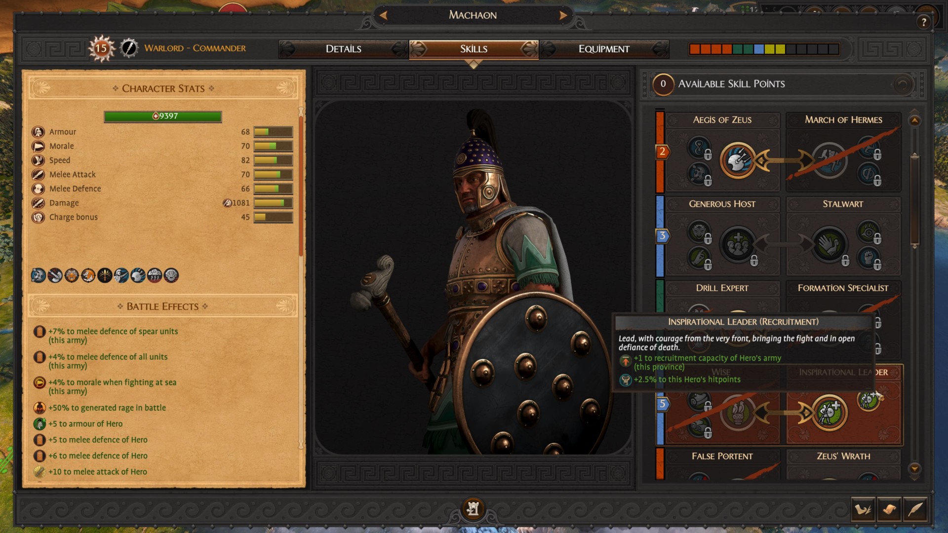 Note 2: Generic heroes also follow the “motivation” system. Motivation fluctuates depending on a hero’s preferences—ie, they like/dislike a god, they like/dislike to raid or sack settlements, they like/dislike fighting battles with reinforcements. Higher motivation allows heroes to perform better, but lower values lead to poorer output. Still, no matter how low motivation gets, they won’t become disloyal.