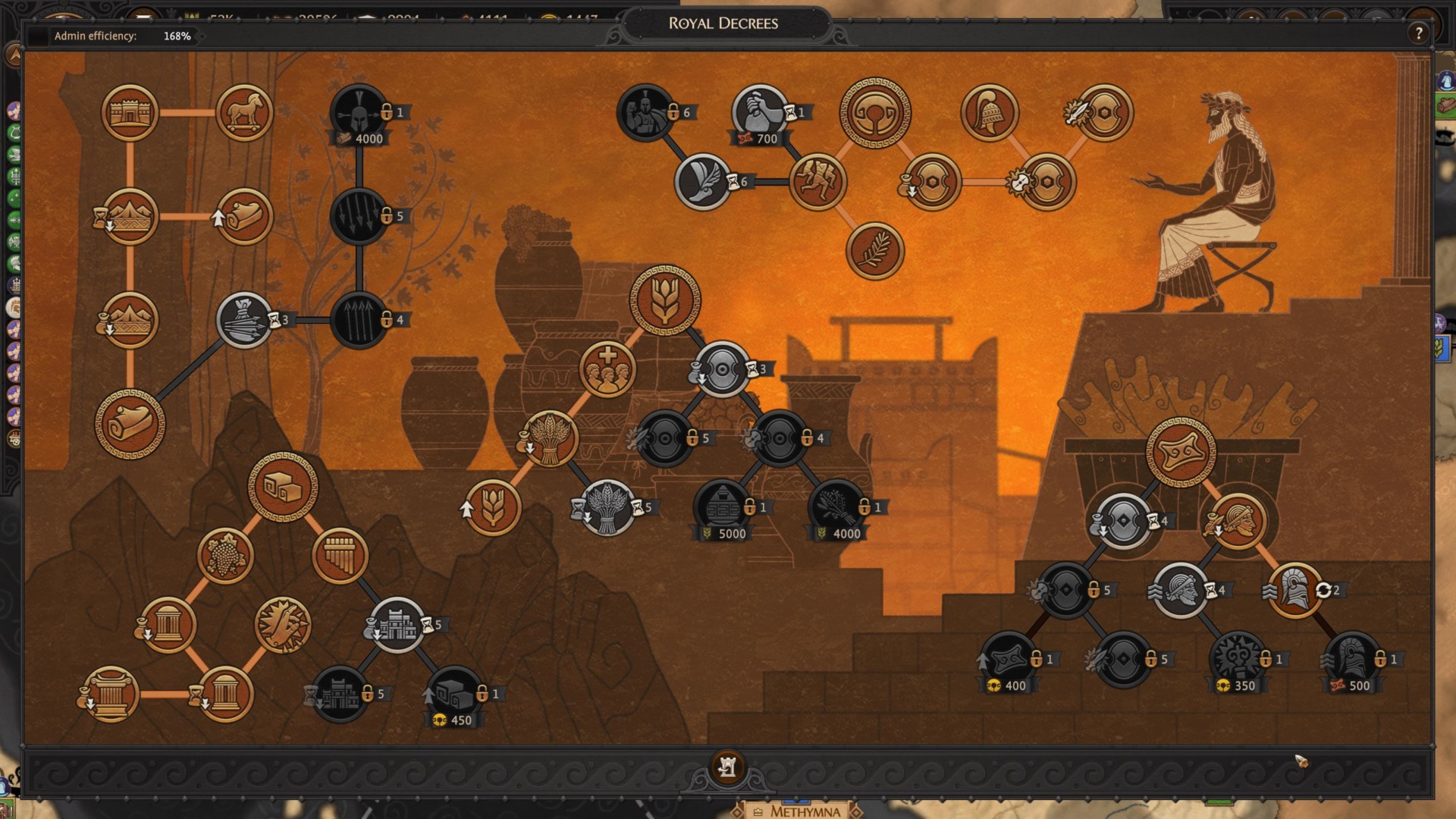 These resources can also be used for other functions such as the tech tree (called “Royal Decrees” in Total War Saga: Troy) or during certain dilemmas/events.