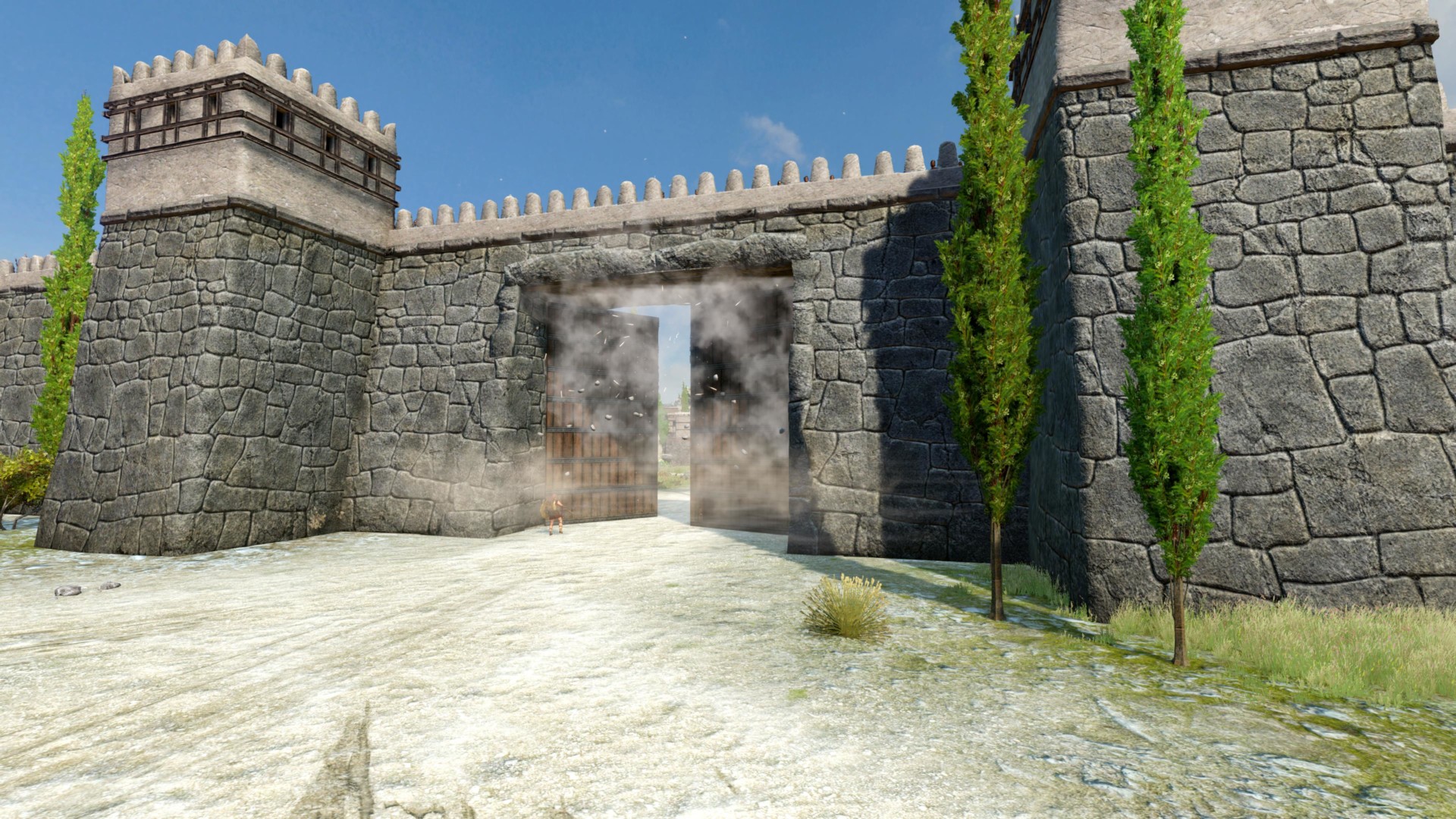 Below, you’ll see Achilles practically kicking down the town’s gate since he probably considers every day as leg day. Good thing he didn’t injure his heel in the process.