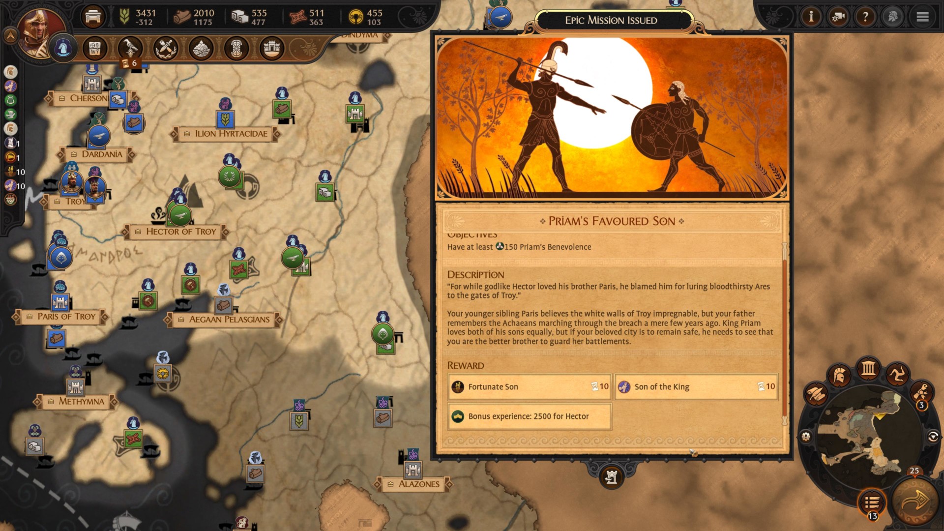 Not only do these epic missions nudge Hector closer to a Homeric Victory in Total War Saga: Troy, but they’ll also provide you with more Priam’s Heir points. As mentioned in our beginner’s guide, I’m still unsure as to how or when these epic missions trigger.