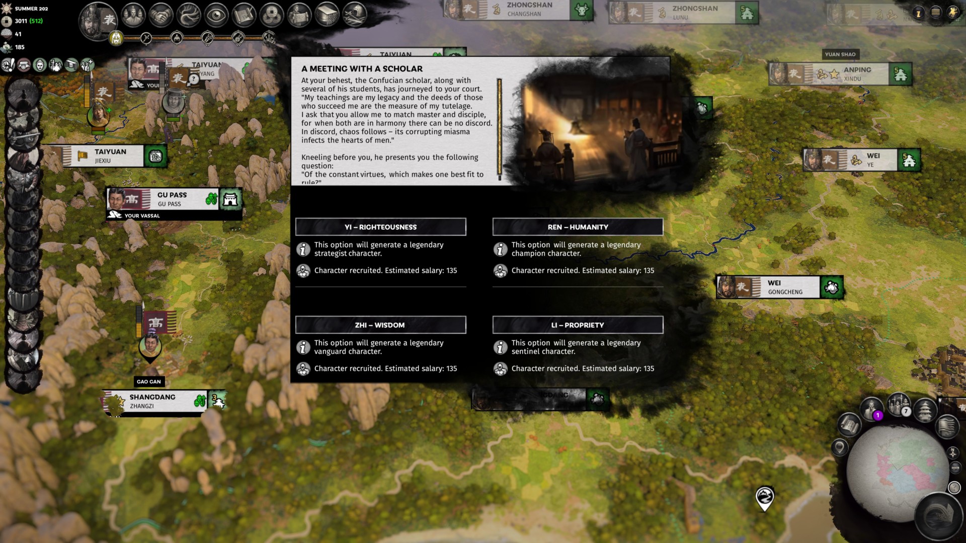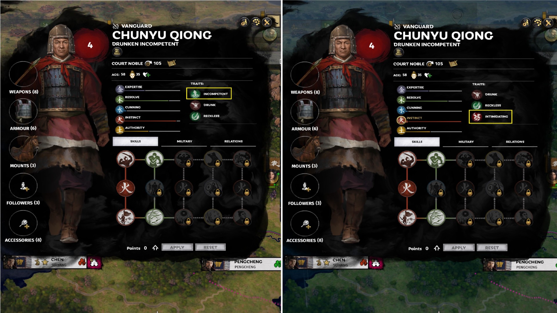 Similarly, you can reroll a character’s traits. It can be helpful if a general is a bit unruly due to ambitious and greedy traits.