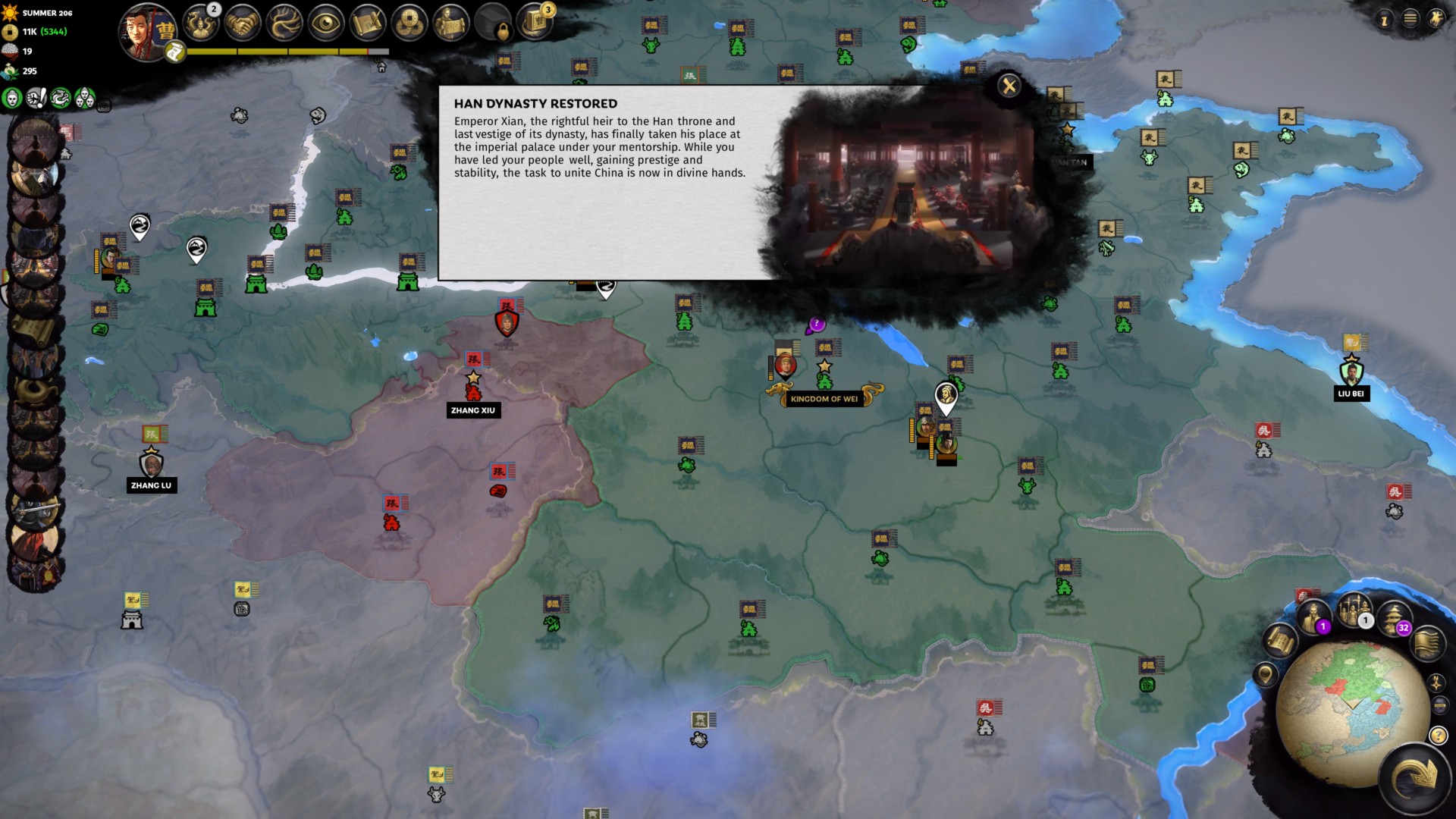 - It’s possible that the game weighs the prestige, lands, and Imperial Favor of various lords to determine if Liu Xie would jump ship or not. If he ends up in Sun Ce’s clutches, that prestige boost would be enough to make him King. However, the AI might be guaranteed to always kickstart its own dynasty instead of restoring the Han.