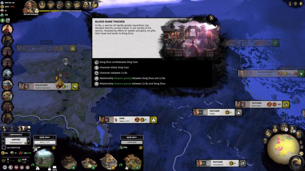 It’s time to take the fight to the Yellow Turbans once the Mandate War event fires on your next turn. Alternatively, you could ignore the entire conflict. Take your sworn brothers, head to the sea, and capture new lands on distant shores. You could even start the historical Romance of the Three Kingdoms rivalry early on by going to the Southlands to battle with Sun Ce and Cao Cao.