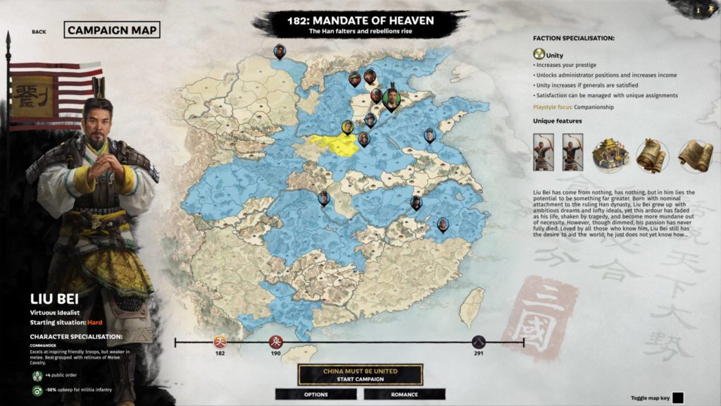 Liu Bei’s unique resource (Unity), his Unification mechanic, and other perks have already been discussed in our previous Shu-Han faction guide for Total War: Three Kingdoms‘ original campaign. These concepts still apply in the Mandate of Heaven expansion.
