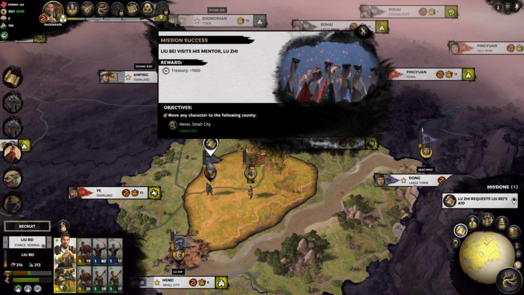 - Turn 8: The Mandate War event fires. Move to Bohai to spawn the final looter army. Switch to ambush or encamp stance. When you end your turn, the looter army will attack Liu Bei, so just defeat it in battle.