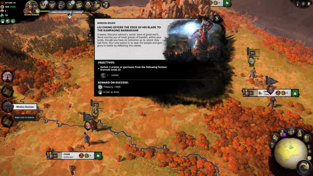 If you choose peace, this choice would lead to objectives where you’re simply upgrading Chen’s buildings and increasing your prosperity. It’s a somewhat boring choice considering Mandate of Heaven‘s main conflict, but it’ll strengthen your power base.