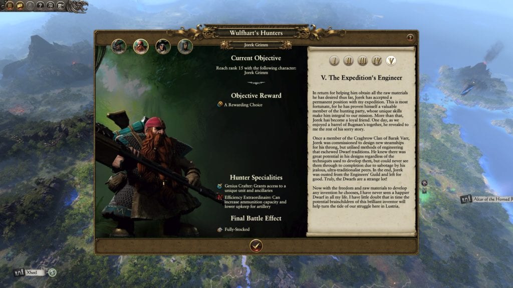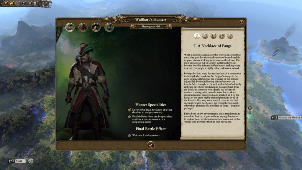 There are four Legendary Hunters that are hidden in the jungles of Lustria. Each one has a number of sidequests or objectives that further boost their capabilities (or those of other unit types). They’re also a nod to the Ubersreik Five (or four, doesn’t matter) — the heroes of the Warhammer: Vermintide games.