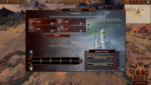 Boris also retains the same faction mechanics that the other Kislevite lords have (i.e., Ice Court, Atamans, Motherland, and Devotion), but there’s a key difference. Katarin and Katarin use Devotion and the Motherland to gain supporters. Boris still amasses supporters. However, this feature lets him add his supporters to either Katarin’s or Kostaltyn’s faction. Essentially, it’s a faster means to get one to confederate the other, which might be helpful if you’re playing a co-op campaign.