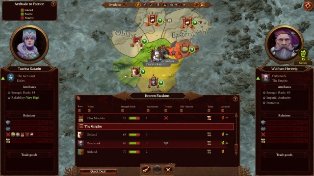 Simply put, now that you’re controlling Kislev, you’ll be offering trade deals instead of rejecting them. Because of how often you’ll fight Chaos, Norscans, and the occasional Skaven, the rest of the Order factions will see you in a positive light.