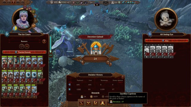 - If playing as Tzarina Katarin in Total War: Warhammer III, her faction bonus gives +10 Devotion whenever Frost Maiden heroes perform successful hostile actions.