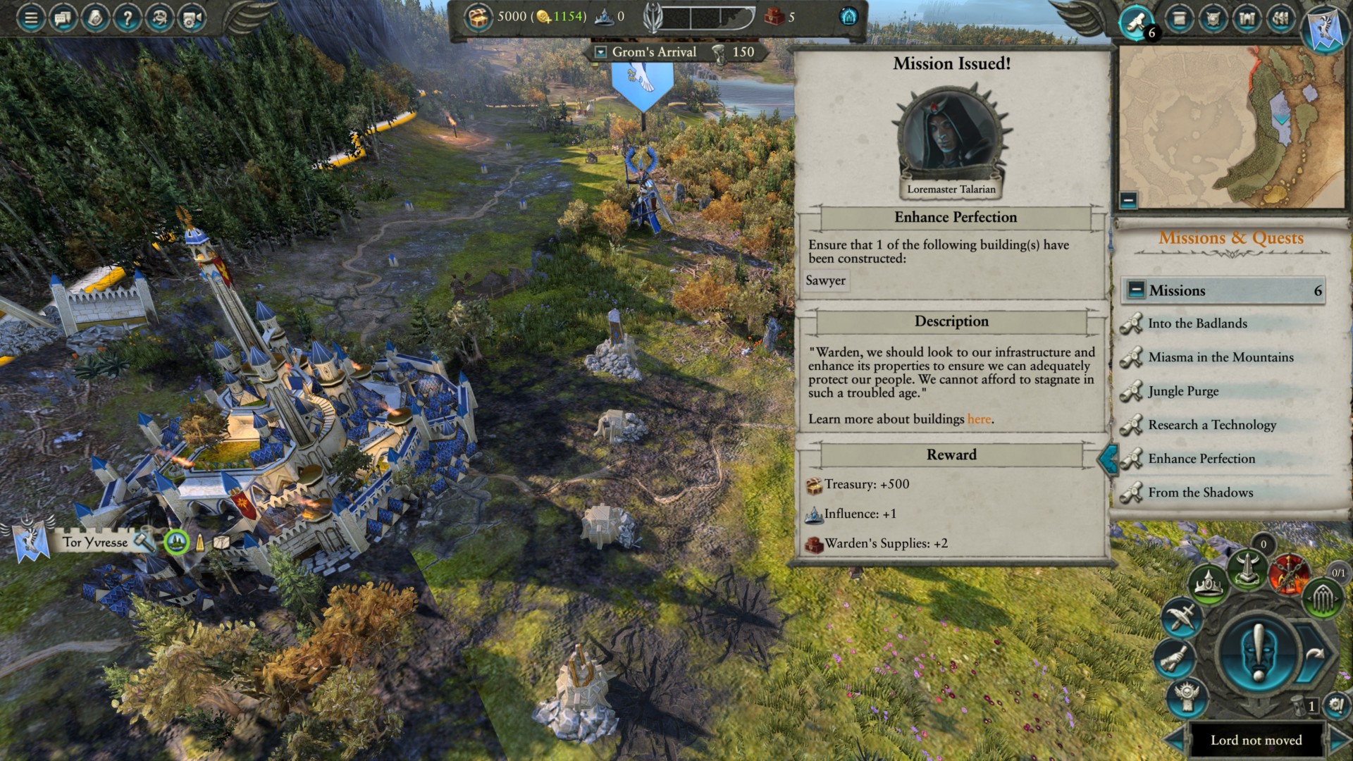 | Miasma in the Mountains | Karag Orrud – Found in the Southlands World’s Edge Mountains province. It’s directly south of Galbaraz just past Quatar and Numas. It’s also Grom the Paunch’s starting location in Total War: Warhammer II’s Vortex campaign. | +5,000 gold +1 warden’s supply per turn +2% income from buildings (all regions) +5 unit capacity for Athel Tamarha Faithbreakers, Skyhawks, Sentinels of Astaril, and Spire Guard of Tor Yvresse |