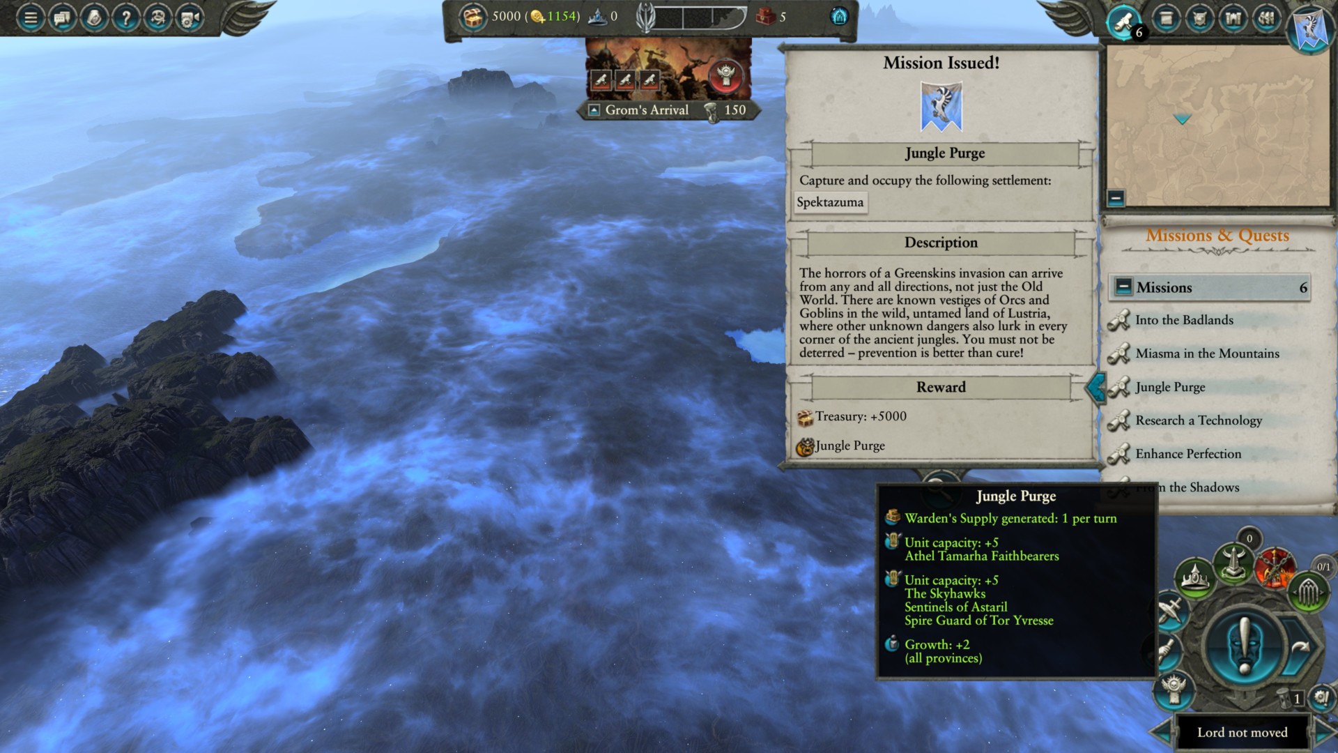 Moving forward, you should send an extra stack to capture Spektazuma much later. It’s possible that it’s lightly defended because Lustria will be a battleground by then. Even if you do lose control of these settlements, the buffs from the quest completions will remain, including the warden supplies generation.