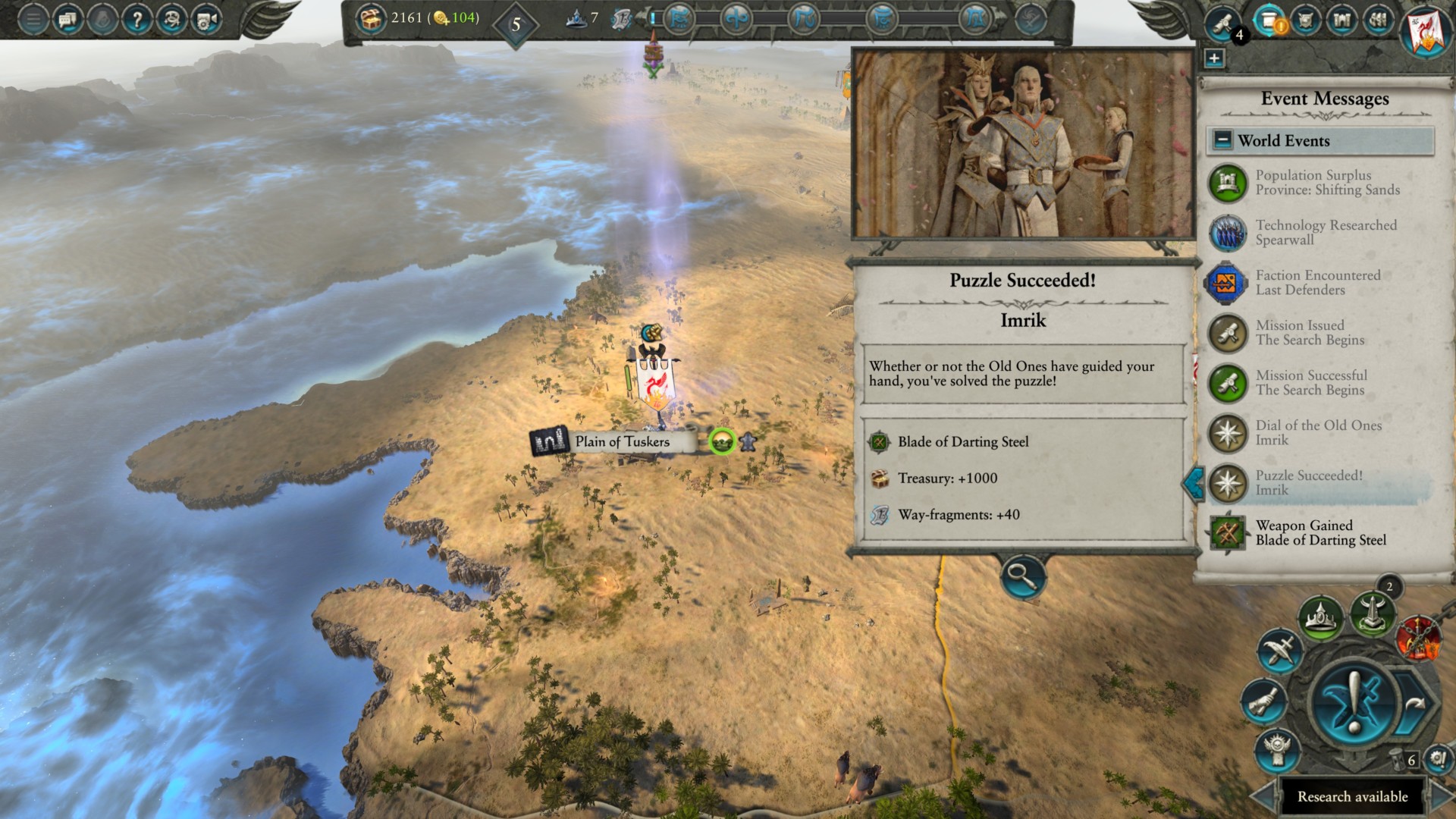 The first few steps in Prince Imrik’s Total War: Warhammer II Vortex campaign are quite easy enough. All you need to do is build a Rally Field and research a tech (both provide you +500 gold and +1 influence). The other mission is to occupy any settlement held by the Dune Kingdoms (+1,000 gold and +8 way-fragments to get you started on your rituals).
