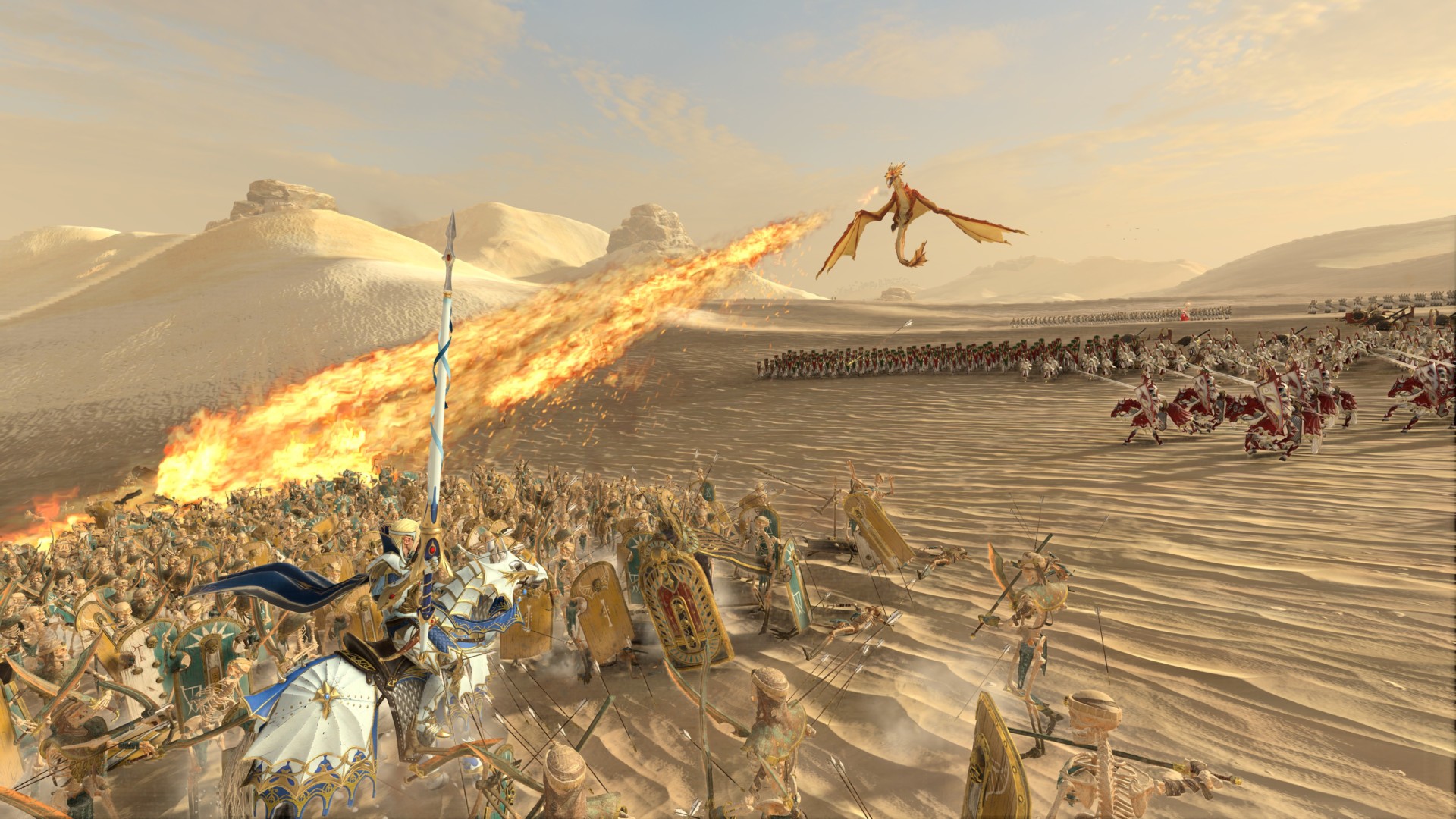 The general idea is to have Imrik and your Dragon Princes charge opposing forces head-on, provided that you’re not running straight towards spearmen. With this distraction, your other units should be able to advance unmolested. Don’t forget to have your Sun Dragon incinerate the undead with its breath attack: