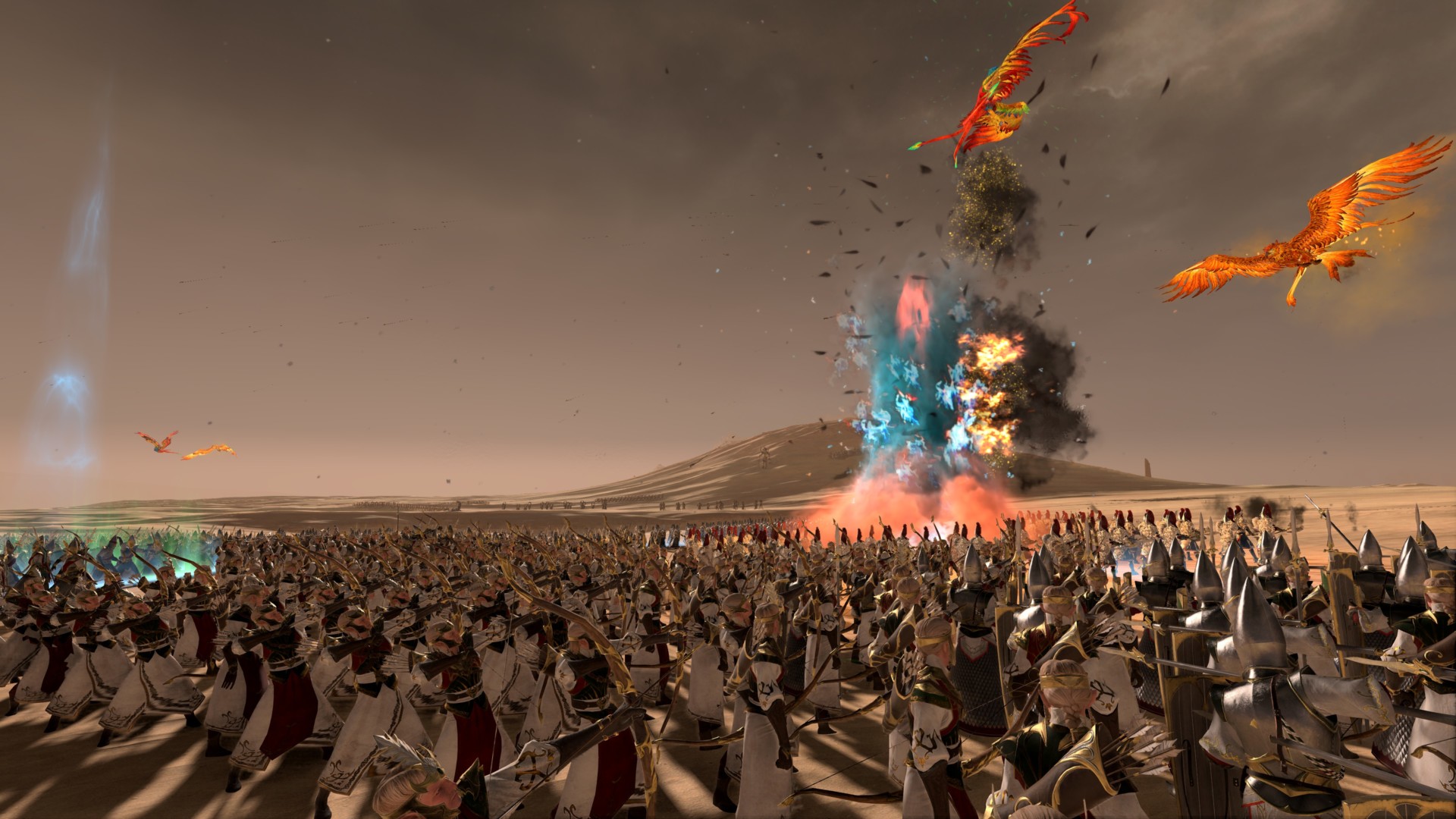 Note: The desert heat will affect the damage of fire magic. Unfortunately, Gordinar and all four phoenixes will be resistant to this damage type, so avoid using any buff/spell/banner that uses fire-based attacks (ie. Flaming Sword of Rhuin or the Greater Invocation of Vaul) as these will just gimp your DPS against them. However, you could still use fire when fighting off the Tomb Kings units.