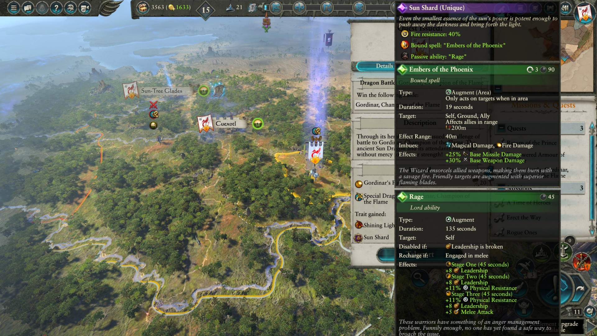 - Gordinar’s Fury (faction-wide buff for 20 turns) – Enables flaming attacks; +15% speed for all units.