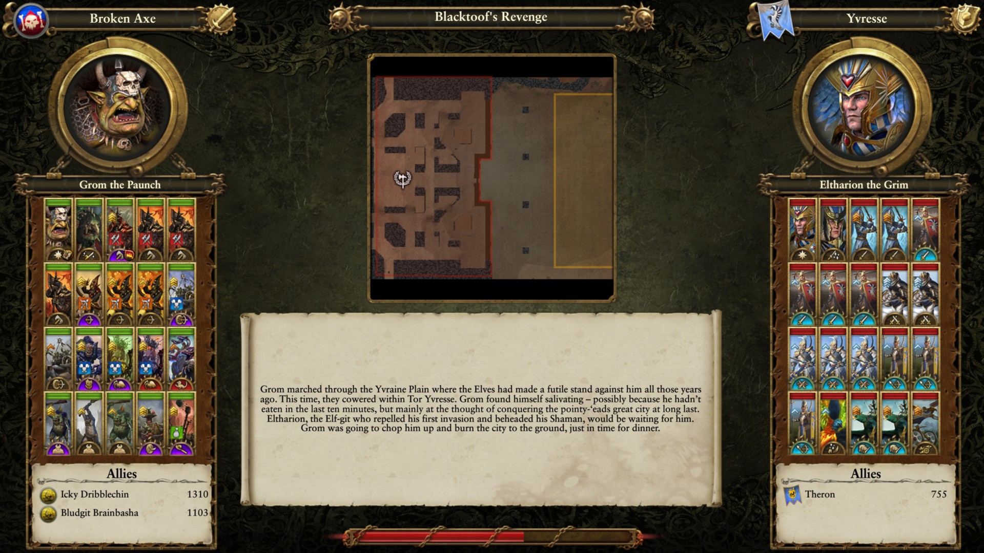 There’s no strategy involved since it’s just a mad rush to exterminate your remaining foes. Eltharion the Grim would be no match against Grom the Paunch’s overwhelming numbers and unfathomable size. With that, the Siege of Tor Yvresse ends in a Greenskin victory.