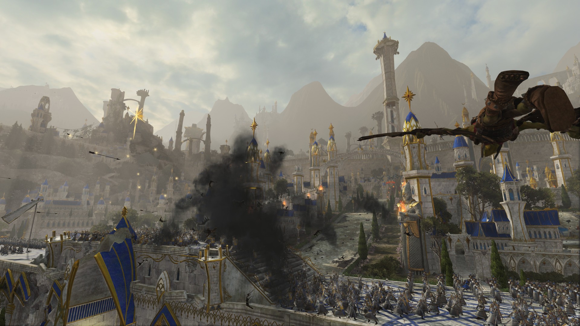 Two allied armies will take the brunt of the damage. They’ll also assail Tor Yvresse’s walls and gate due to having multiple giant monsters, siege towers, flying units, and Doom Diver artillery. I mostly used my Rogue Idol and Rock Lobber to destroy sections of the wall that had a mass of skinny gits.