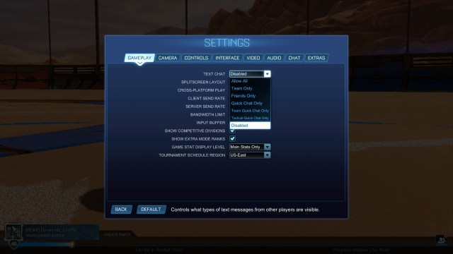 Now, I’m not saying that this is the right move for everyone. Sure, if you’ve got a solid team and rely on team chat to walk away with a win — more power to you. However, if you find yourself becoming discouraged or defeated by spamming messages in a match or toxicity in a games, I might suggest dancing through the menu options and turning its text chat to completely disabled. You might think you’re backing down from a fight or ignoring your problems or whatever. From my own personal experience, it has all but spared my mental health, and that’s something to really spam “What a save!” about.