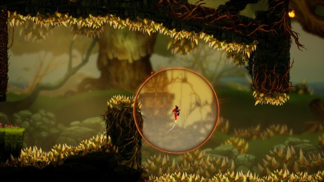 Unbound: Worlds Apart is billed as a bit of a Metroid-like, but that’s only partially accurate. In reality, the game is divided into three areas: the forest, the desert, and the dark, evil very bad not-at-all good place where the evil lord of evil awaits. When you first start the game, Soli can only jump. That’s it. During the intro, however, they get the ability to use portals. But “portal” really isn’t the right word. I’m not sure what the right word would even be, considering how variable the effects are.