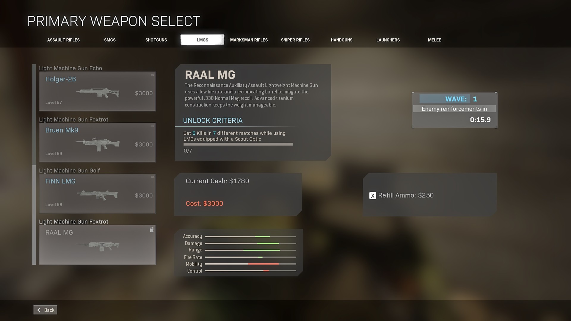 For most players though, it’s going to be easier to just use one of the best LMGs. Honestly, the challenge is so generic that just about any of Modern Warfare‘s seven current LMGs should work fine. But if you want to make this as easy as possible, either the PKM, Bruen, or FINN are probably your best choices. All of these guns have competitive time to kill ratings and are easy enough to use. Many Warzone players probably already have the Bruen leveled up too, as it was once meta. A quick warning though, some users have reported that the challenge is bugged for them. For whatever reason, unlike the Sykov and CX-9, not everyone seems to be able to unlock the RAAL MG. Therefore, I’d recommend playing one game, getting your five kills, and then checking in Survival mode to see if the progress counted.
