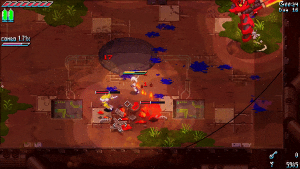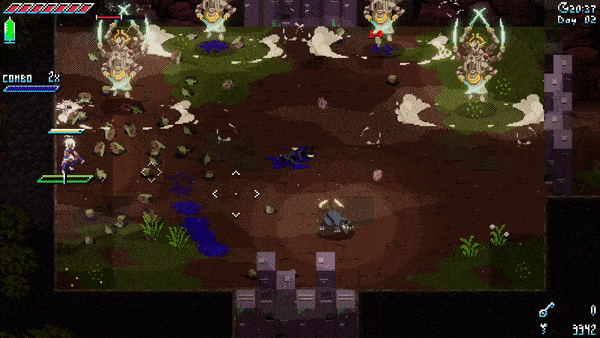 I love the pixel art of Unsighted and the scenes are beautifully styled. The perspectives were sometimes a little off, but you get used to it quickly enough. Each area of the city has a bespoke look and feel associated with the powerful Automaton living there. There are also unique mechanics in each of these areas that help refresh the puzzles. Just make sure you do them in the right order, as they are labeled from one to five.