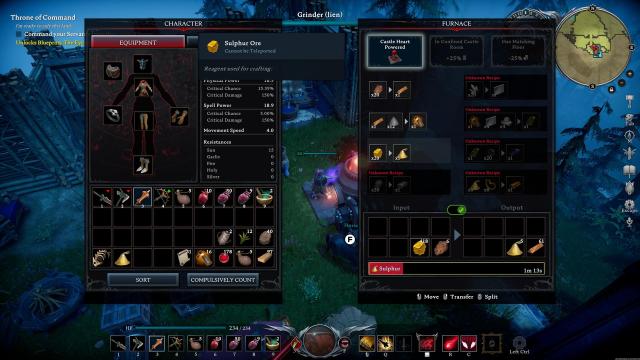 If you need more Sulfur, go ahead and interact with the Furnace. Place all the Sulfur Ore that you have (you’ll need 20x Sulfur Ore for 1x Sulfur item).