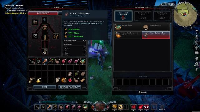 Next, interact with the Alchemy Table that you’ve just constructed. You should now be able to craft the Minor Explosive Box (8x Sulfur, 8x Plank, and 4x Whetstone).