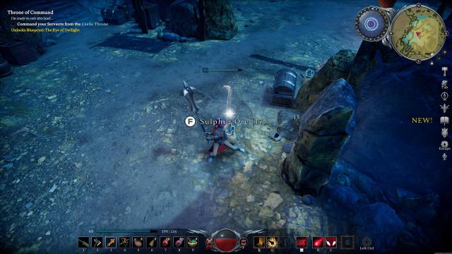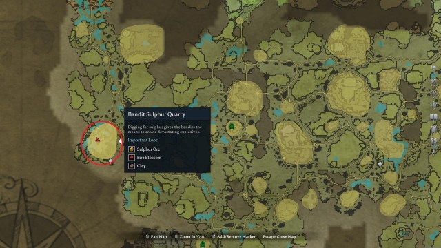 To acquire the Sulfur recipe in V Rising, you’ll need to take out Clive the Firestarter. Upon tracking this level 30 boss using the Blood Altar, you’ll find him in the Bandit Sulfur Quarry in the western portion of Farbane Woods.