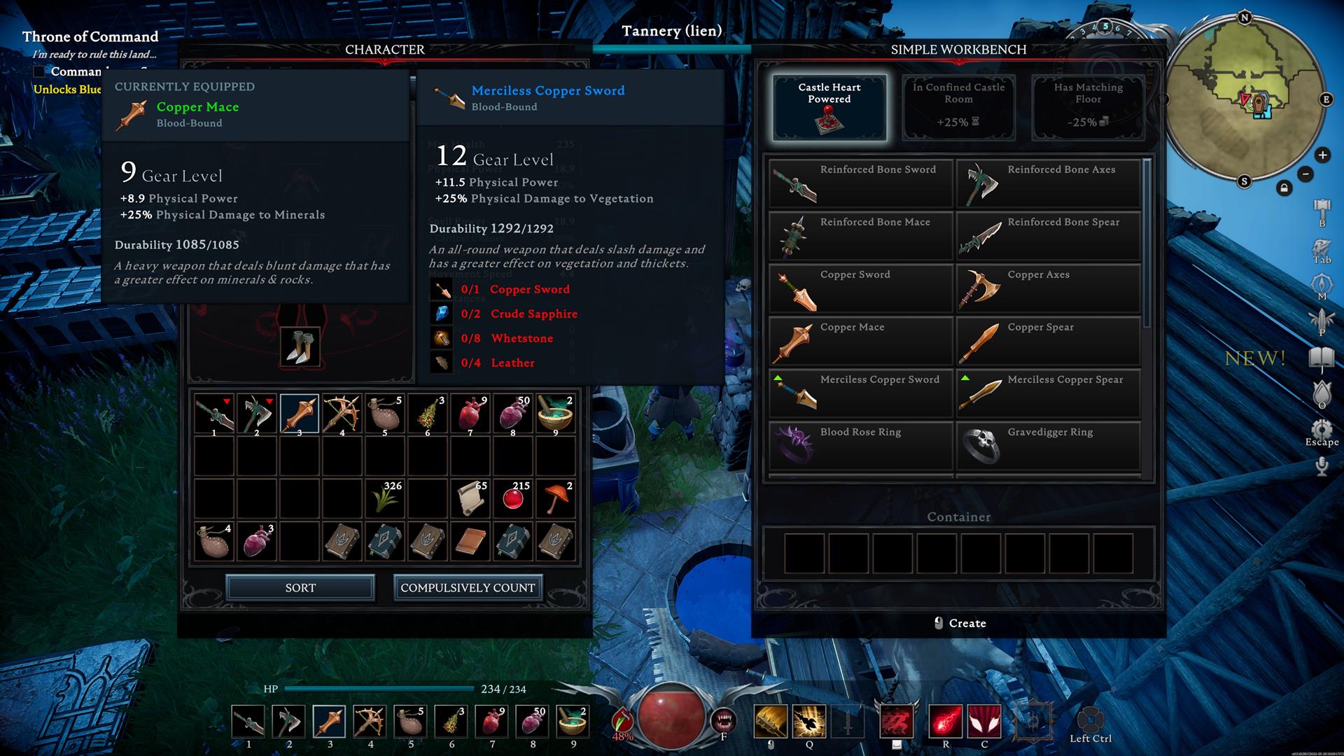 - Merciless Copper Sword (12 gear score) – 1x Copper Sword, 2x Crude Sapphire, 8x Whetstone, and 4x Leather.