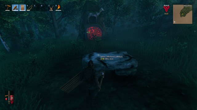 Anyway, let’s say you made it to Eikthyr’s altar. Simply open your inventory and drag 2x deer trophies to a numbered slot. Check the altar and press the keybind to place your sacrifice.