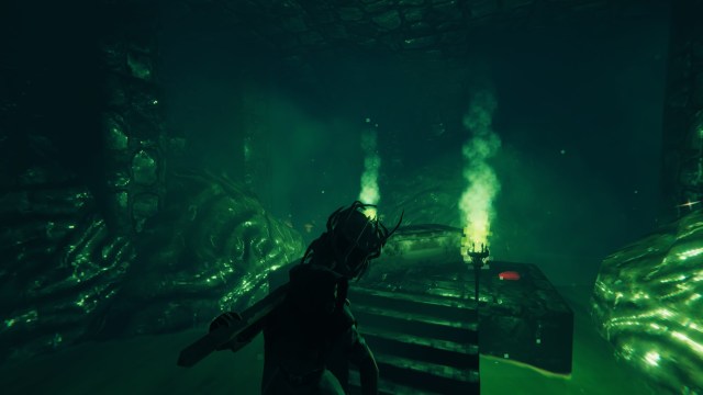 These ominous-looking structures have two green flames at their entrances and all you need to do is use the Swamp Key to open them.