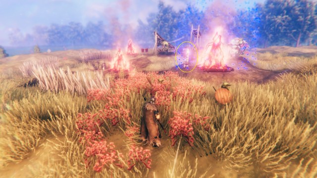 Given the fire damage that you’ll inevitably take, it’s important to use your fire resistance mead. Eating your cooked food and pies, meanwhile, should help you regenerate health while the boss is coming for you. But, do try to avoid damage when you can since each hit can take out a chunk of your HP.