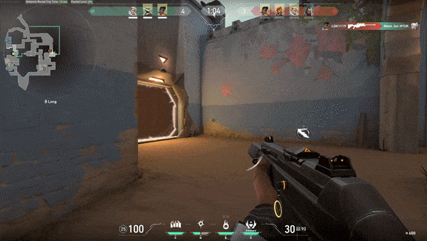 Speaking of getting blindly sprayed down, you should always wide peek when following up Curveball. If your enemy has good crosshair placement and is disciplined enough to ignore the Curveball flying in above their head, they could spray you down if you only step a little bit out of cover. So, rather take a big wide step, moving beyond where your enemy is aiming, and open fire.