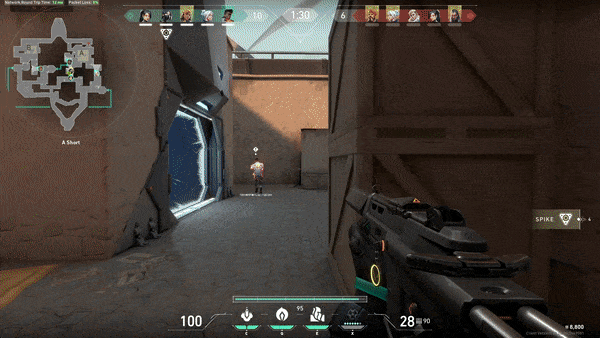 You can raise and lower your wall as many times as you like — cooldown and toxic gauge depending. So, when you place your screen, raise it as soon as you can. Then drop it again immediately and peek. Enemies will often be crossing the corridor, trying to pick up an orb, or creeping towards you. They will not expect your screen to come down so soon after it went up. And that gives you a chance to shoot some fish in a barrel. This is one of my favorite tricks in this Valorant Viper guide as it often catches enemies by surprise.