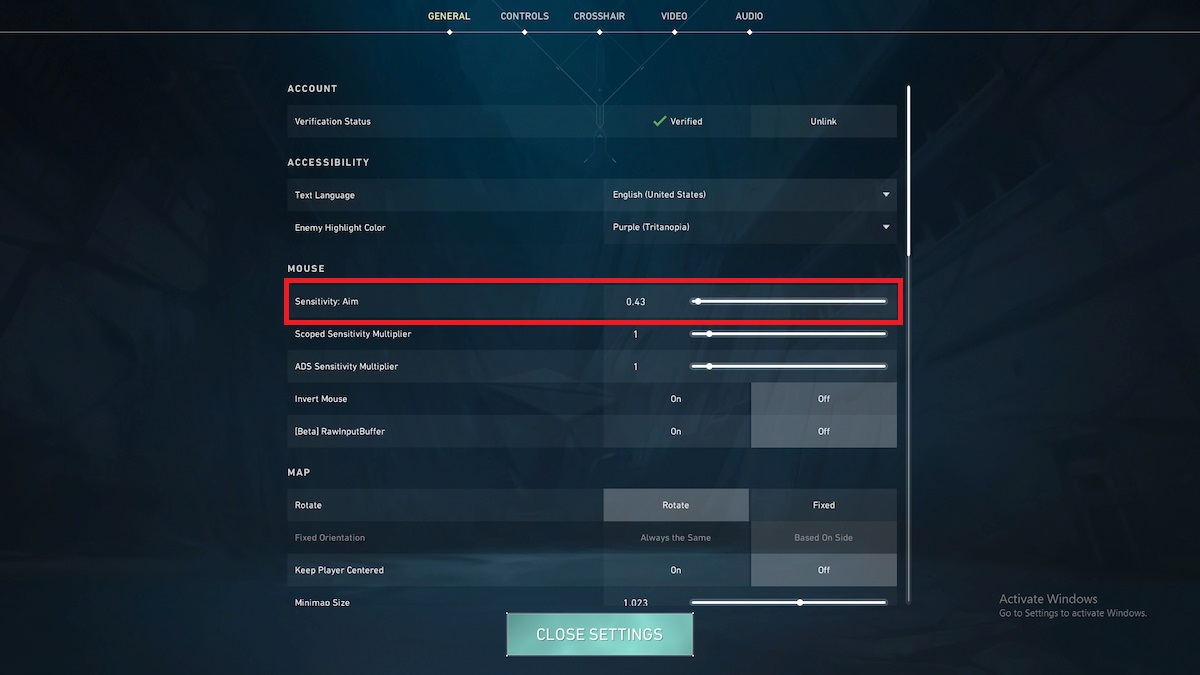 - Here, you can find your Valorant sensitivity in the Sensitivity: Aim option.