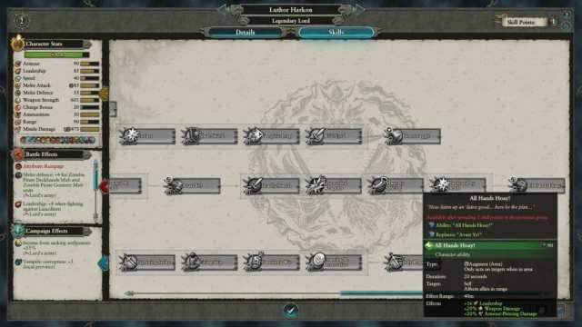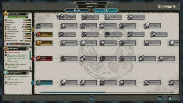 Your lords will also have specific skills that will bolster your offensive and defensive capabilities even more. Here’s Luthor Harkon’s skill tree: