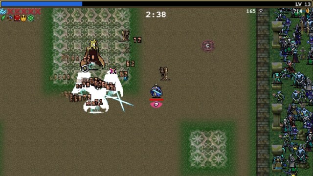 With all the setup out of the way, it’s time to get down to it and clear the stage. Since your weapon won’t be changing at all, the main consideration here is what passive items you want to use. We’d recommend a combination of power-increasing items and items that boost your survivability. The Spinach and Empty Tome are great choices, increasing your damage and letting you deal it more often, while the Armor and Pummarola will greatly boost your endurance, letting you shrug off blows and heal back any damage taken.