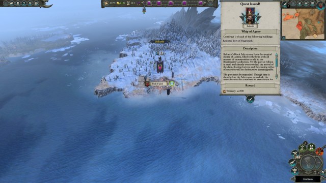 Moreover, since the Whip of Agony quest battle takes place at sea, it counts as a “sea battle completion” for 1x Kharybdiss Monster Pen unit. In fact, several Monster Pen units of the Lizardmen dinosaur variety get unlocked as extra rewards. You should get 1x Feral Carnosaur, 1x Feral Stegadon, and 4x Feral Cold Ones in addition to the Kharybdiss.