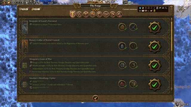 Mind you, conquest is your only recourse, so you have to control, sack, or raze that settlement to claim the unique part. You’re likely to go to war against factions who own these regions just for a single item, which is why you need to plan your moves accordingly. You don’t want to buddy up with Teclis, Khalida, Gor-Rok, or Lord Mazdamundi only to realize that they’ve just captured a settlement with an Artifact piece.