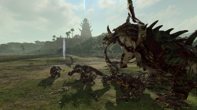 Teleport to the quest battle to face the Empire and the Lizardmen. The Empire army is led by a General. However, one of your main targets is Jorek Grimm, a wayward Dwarf Engineer. Further away are two Lizardmen armies that are almost identical; one is allied, and the other is hostile. The difference is that the hostile army has “The Big One,” a beefed-up Dread Saurian (it’s also another key objective).