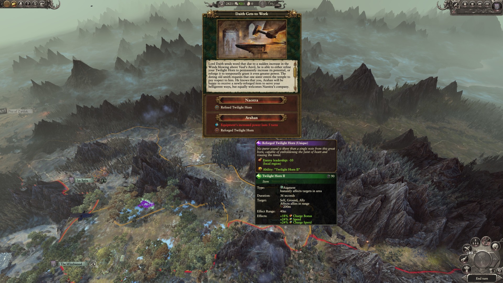 Unfortunately, I can’t say the same for the Sisters of Twilight. The faction’s unique mechanic involves the Forge of Daith, allowing the twin maidens to gain rewards from the legendary Elven smith. Every 10 turns, Daith will let you select a gift (which is usually a green item).