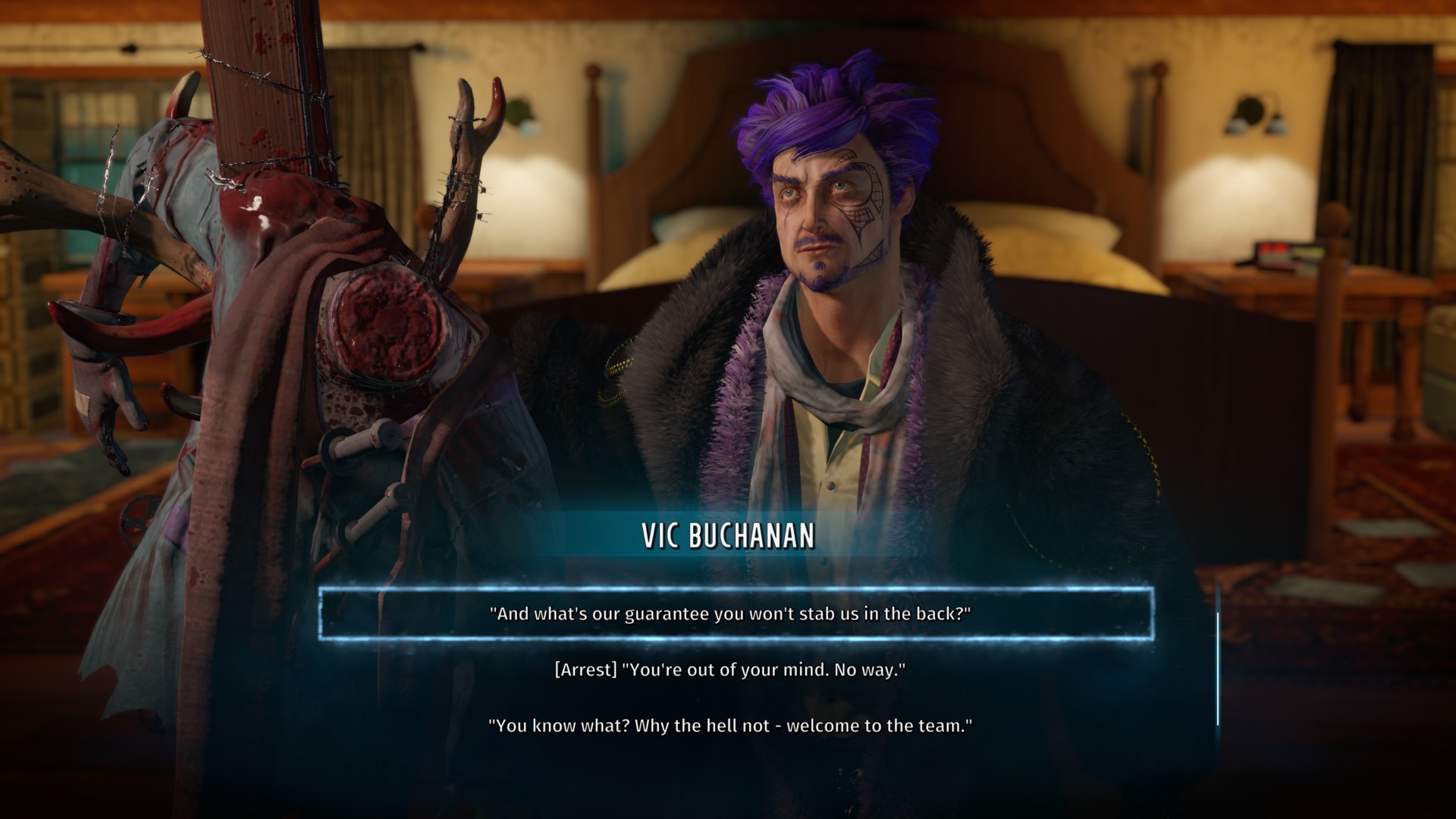 If you chose the other options, Vic will suggest that he should join your team. Yes, he’s that insane: