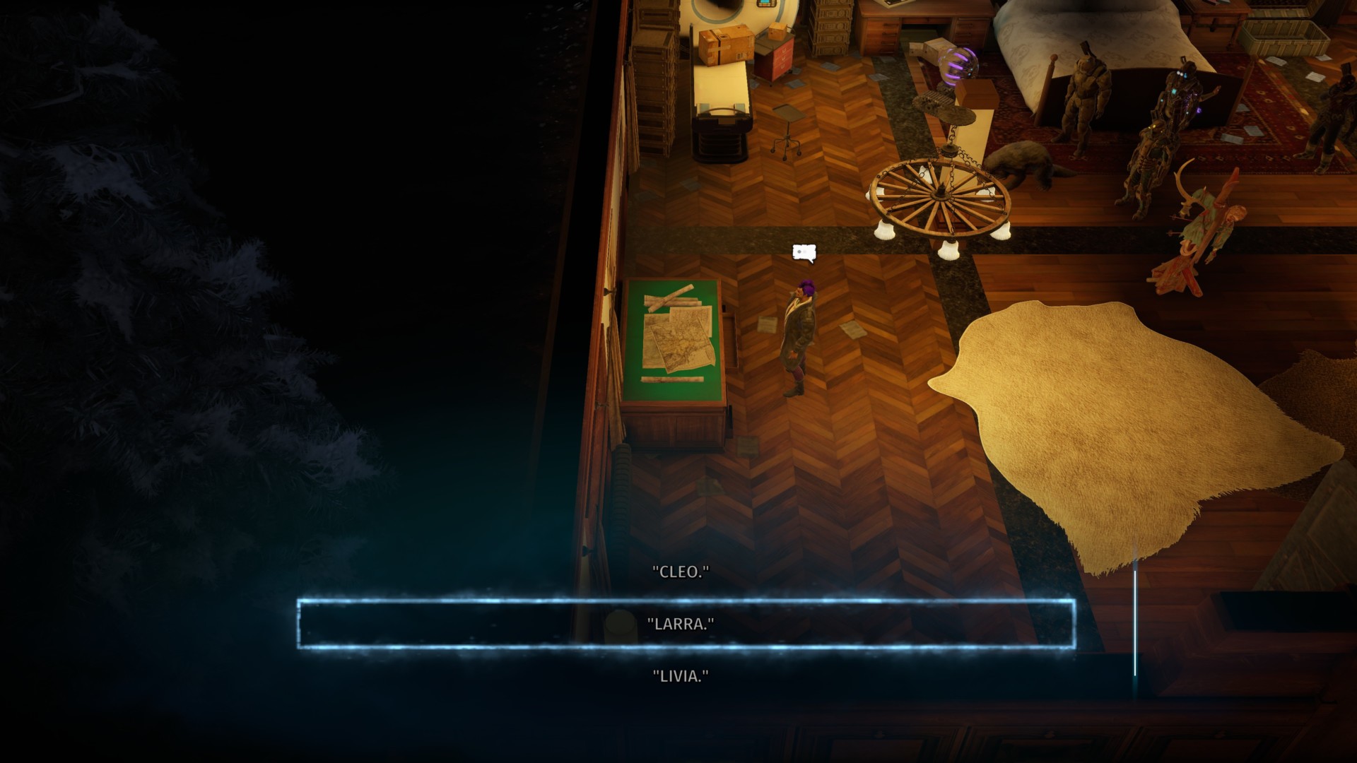 Lastly, you can inspect the map at the corner of the room. These mark the locations of the Patriarch’s wives: Cleo, Larra, and Livia.